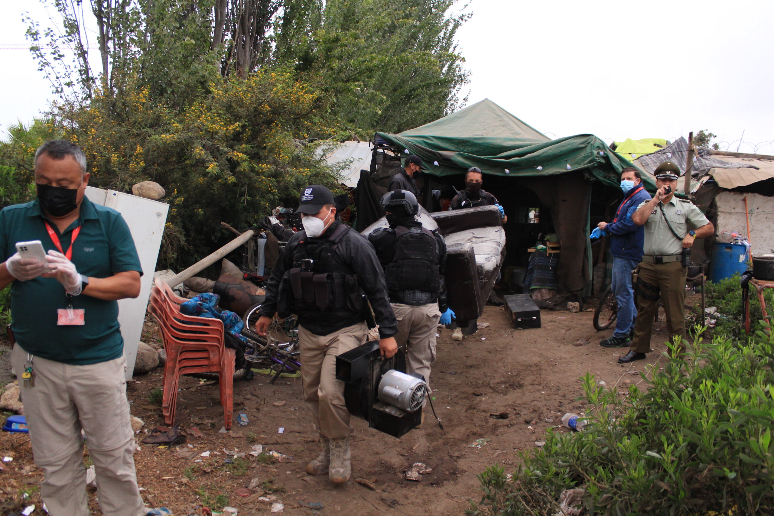 “Esto nace a raíz de varias denuncias, tanto de los vecinos del sector, como también de personas que transitan por este lugar. Aquí existía un foco de delincuencia producto de intimidaciones y de asaltos que habían sufrido varias personas, por lo tanto, se realizó una planificación de búsqueda de información en primera instancia por parte de nuestro equipo y luego se llegó a la conclusión de que era efectivo, aparte de estar en una toma ilegal irregular. Se procedió a coordinar este operativo donde tuvimos muy buena acogida por parte de Carabineros y la Policía de Investigaciones”, afirmó Gonzalo Arceu, director de Seguridad Ciudadana La Serena.