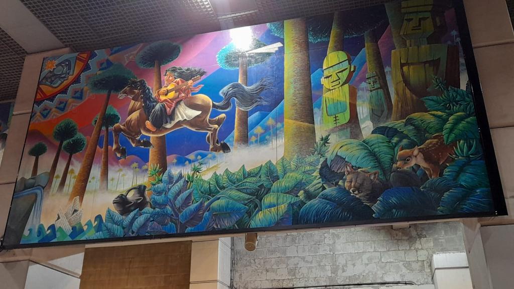 “Sueños tutelares”, que mide 24 metros de largo por 3 metros de ancho, fue pintado con la técnica de esmalte al agua sobre fibropanel hidro tratado y fue trasladado desde la Región de Coquimbo hasta Santiago tras un esfuerzo de cerca de 10 meses por parte del Sename.