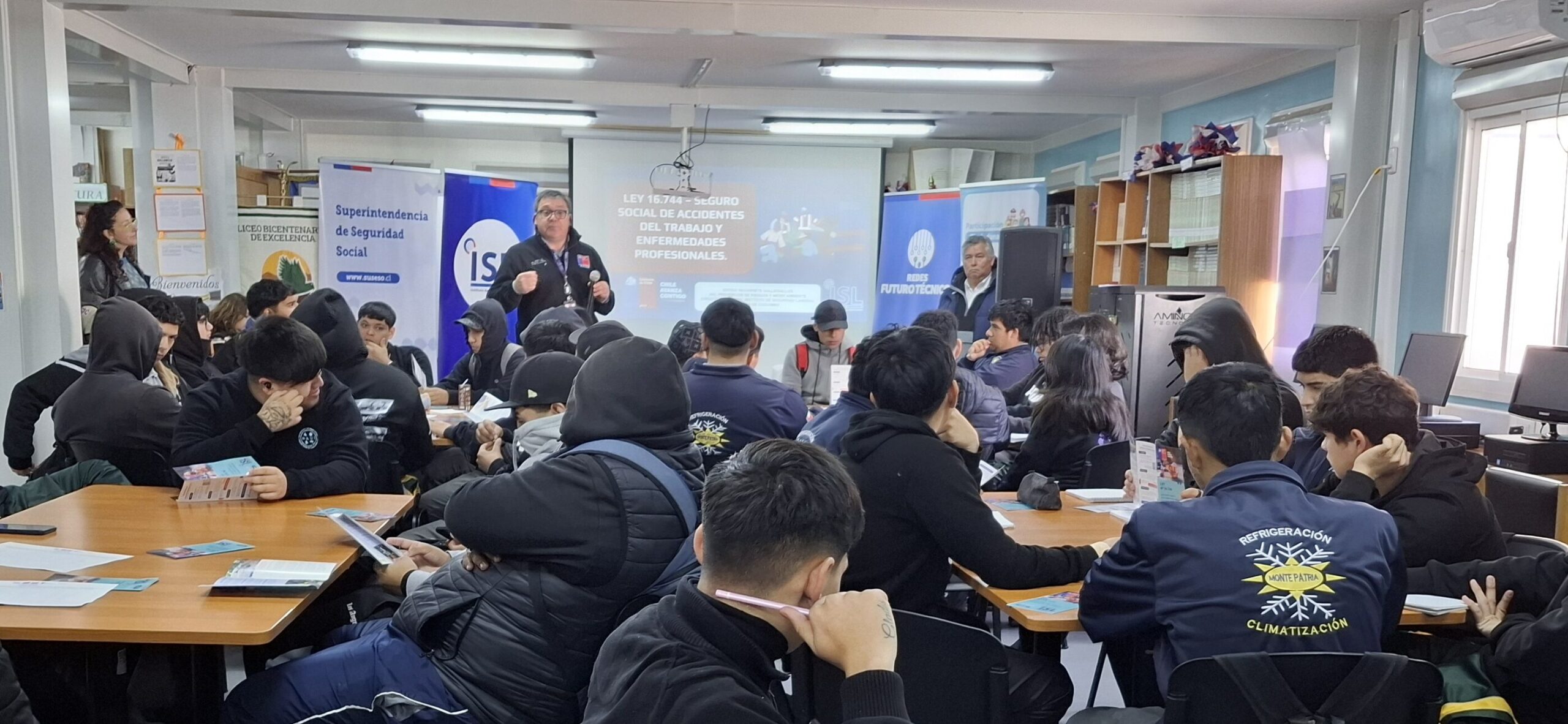En una iniciativa inédita de colaboración interinstitucional, el Instituto de Seguridad Laboral (ISL) de Coquimbo, junto a la Superintendencia de Seguridad Social (SUSESO) y la Red Futuro Técnico, desarrollaron un ciclo de capacitaciones sobre el Seguro Social contra Riesgos de Accidentes del Trabajo y Enfermedades Profesionales, establecido en la Ley 16.744, beneficiando a más de 450 estudiantes de la Educación Media Técnico Profesional (EMTP) en las tres provincias de la Región de Coquimbo.
