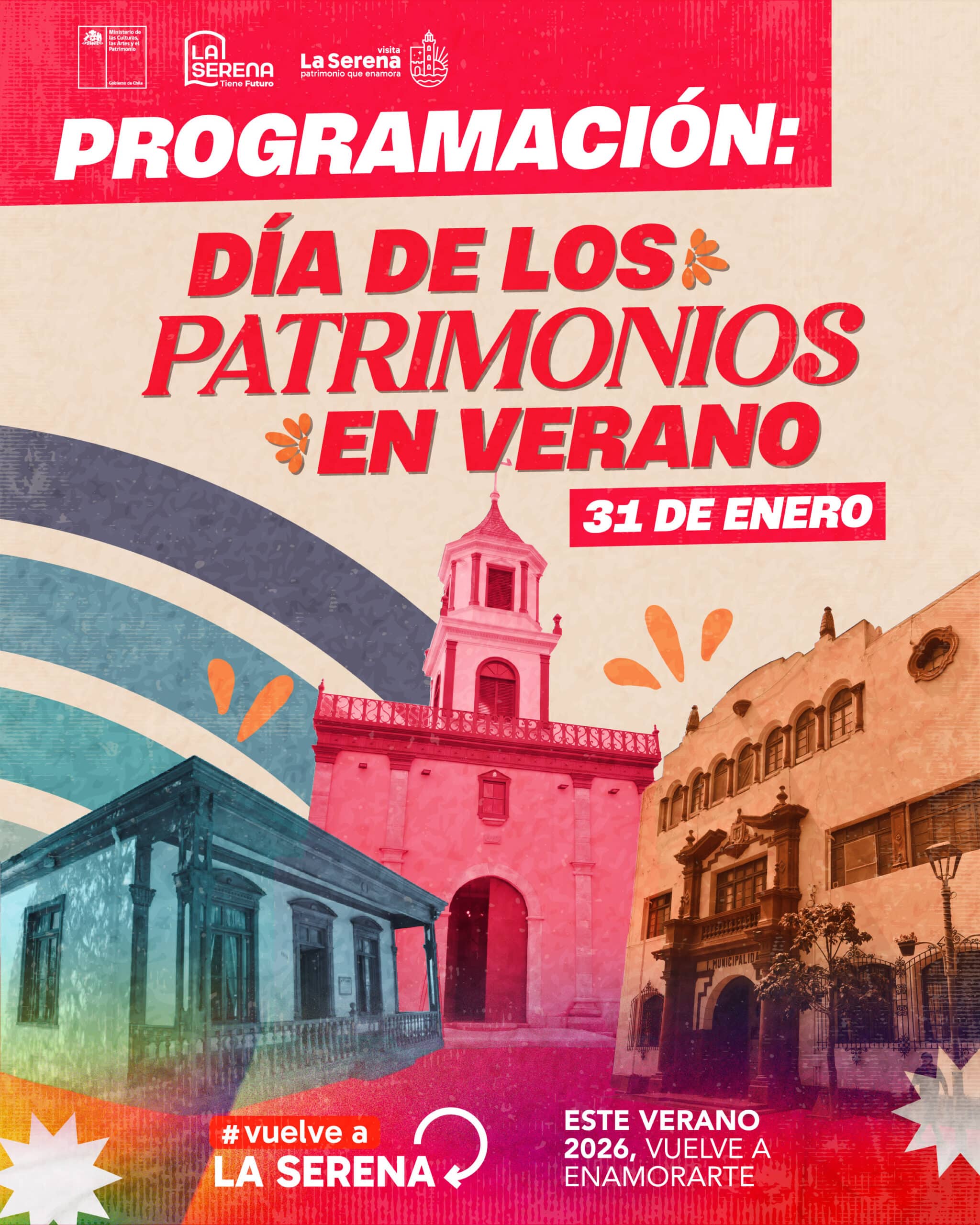 Este sábado 31 de enero, la comuna de La Serena celebrará el Día de los Patrimonios en su versión de verano, con una amplia y diversa programación gratuita que se desarrollará en el Edificio Consistorial, el Centro Cultural Santa Inés, la Biblioteca Regional y la Casa de las Palmeras.