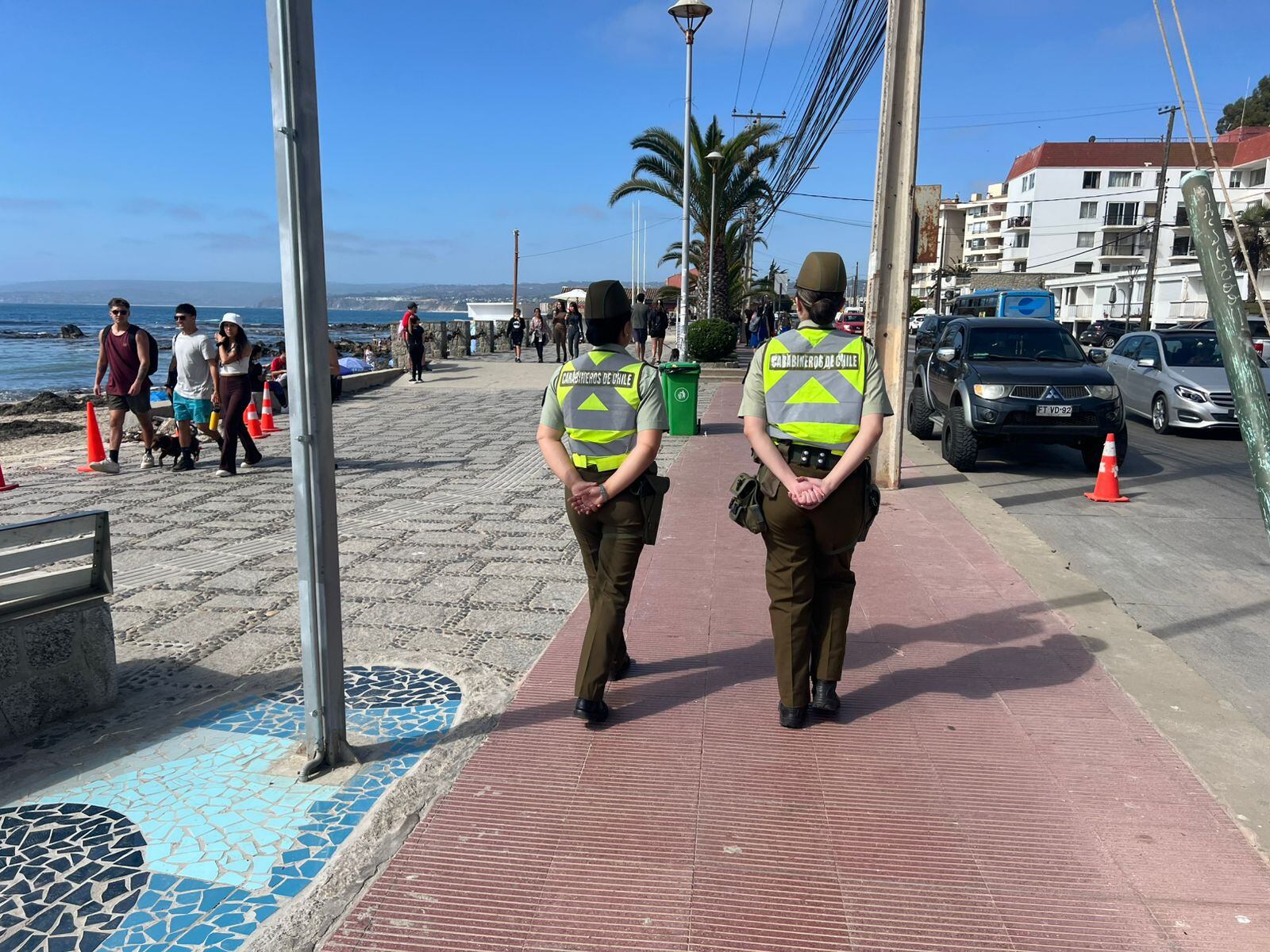 Dos funcionarias policiales, que se encuentran en la región de Coquimbo como parte del refuerzo por Plan Verano, se lanzaron al mar para rescatar a una turista de 75 años, que se mantenía con riesgo de inmersión. Las uniformadas, provenientes de la Escuela de Suboficiales de Carabineros en Santiago, fueron alertadas de la situación mientras realizaban un patrullaje en bicicleta por el borde costero a la altura de Cuatro Esquinas.