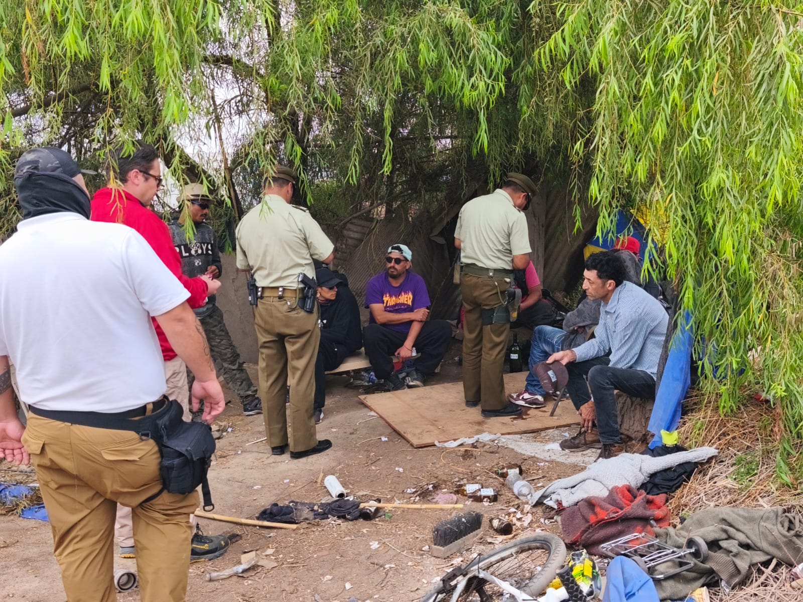 Es así como, en coordinación con la oficina de Modelo de Integración Carabineros Comunidad (MICC) de Carabineros de Chile, llegó hasta las cercanías de la Ruta 5, específicamente a la vía férrea y la pasarela peatonal de Avenida Amunátegui; para erradicar dos rucos. Procedimiento que dejó como resultado 10 personas retenidas.