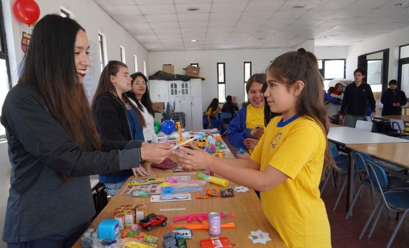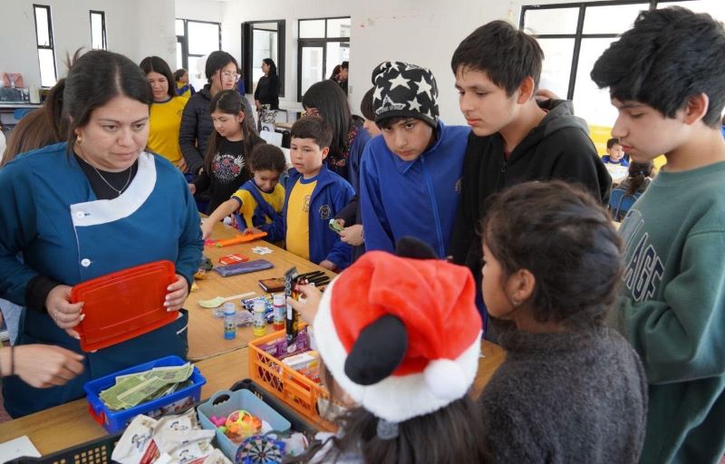 Entradas para el cine, pelotas de fútbol, juego de ping – pong, juguetes, alimentos, lápices, libretas, entre otros productos, pueden adquirir las y los estudiantes de la Escuela de Colonia Alfalfares de La Serena, con los billetes que reciben por su buena asistencia a clases, en el “Mercadito Tía Pía Coints”, una pequeña tienda mensual, creada por el establecimiento para aumentar la asistencia de sus estudiantes.