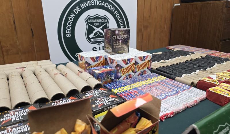 En esta línea, desde Carabineros reiteraron el llamado a no adquirir este tipo de elementos. “Es importante recordar que tanto la venta como el uso de fuegos artificiales están prohibidos y penados por la Ley, por lo tanto el llamado es a no realizar este tipo de adquisiciones, que además pueden poner en riesgo directo a sus seres queridos. No olvidemos que lamentablemente, la manipulación de petardos, chispitas y otros tipos de artificios, representan la principal causa de quemaduras en estas festividades”, concluyó el Capitán Galvez.