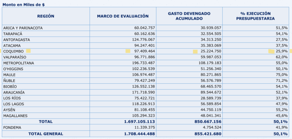 Una ejecución presupuestaria del 25,9% reflejaba hasta el mes de agosto de 2025 el Gobierno Regional de Coquimbo, que dirige el gobernador Cristóbal Juliá (IND-Evópoli), manteniendo nuevamente a la zona en el último lugar nacional en cuanto a la inversión para el desarrollo de las tres provincias. El marco presupuestario es de M$97.409.464 para este 2025.